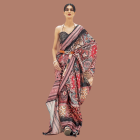 AKHILAM Women's Kalamkari Crepe Digital Print Saree With Unstitched Blouse Piece