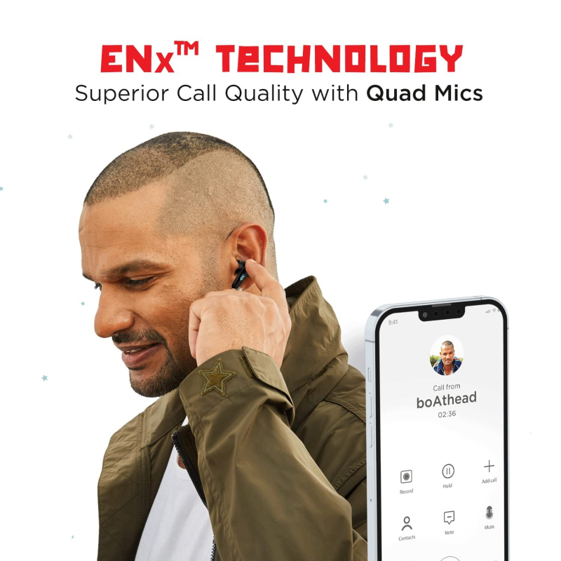 • Clear Voice Calls- Be heard clearly across voice calls without those usual interruptions, with the ENx Tech-enabled quad mics that cancel out unwanted background noises during calls, on Airdopes 190.