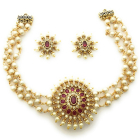 Gold Plated AD Stone Studded 3 Layer Pearl Neck Choker Jewellery Set