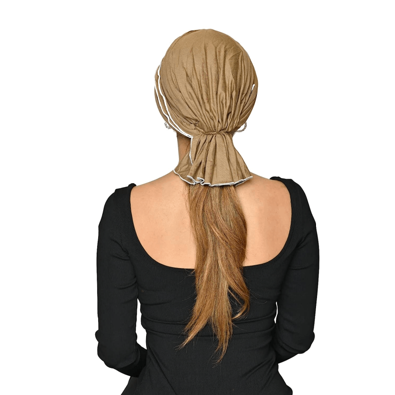 Material: 95% Bamboo Viscose & 5% Elastane Breathable soft natural Cap. Gathers at front and ruffles at the back.